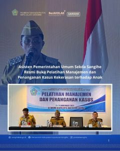 Tahuna, 25 November 2025 — Asisten Pemerintahan Umum Sekretariat Daerah Kabupaten Kepulauan Sangihe, Johanis Emil Hengkengnusa Pilat, S.Sos., M.M., mewakili Bupati Kepulauan Sangihe, secara resmi membuka Pelatihan Manajemen dan Penanganan Kasus Kekerasan terhadap Anak yang dilaksanakan di Silladen Room, Tahuna Beach Hotel.