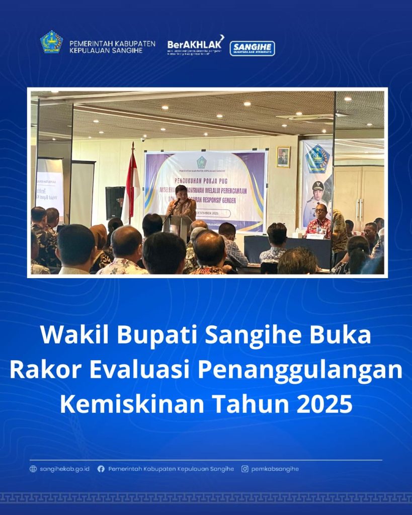 Sangihe – Wakil Bupati Kepulauan Sangihe, Tendris Bulahari, menghadiri sekaligus membuka secara resmi Rapat Koordinasi dan Evaluasi (Rakorev) Tim Koordinasi Penanggulangan Kemiskinan Daerah (TKPK) Kabupaten Kepulauan Sangihe Tahun 2025, yang digelar di Ballroom Tahuna Beach Hotel and Resort, Kamis (18/12/2025). Kegiatan Rakorev ini dirangkaikan dengan Pengukuhan Kelompok Kerja (Pokja) Pengarusutamaan Gender (PUG) dalam rangka akselerasi […]