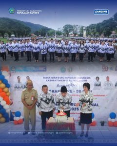 Melalui momentum Hari Guru Nasional, pemerintah daerah menyampaikan penghargaan setinggi-tingginya kepada seluruh guru, kepala sekolah, dan tenaga kependidikan atas dedikasi, pengabdian, serta kontribusinya dalam meningkatkan mutu pendidikan di Kabupaten Kepulauan Sangihe.