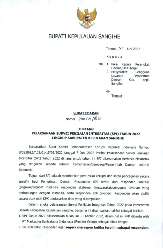 SURAT EDARAN PELAKSANAAN SPI TAHUN 2022