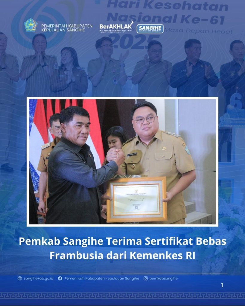 Pemkab Sangihe Terima Sertifikat Bebas Frambusia dari Kemenkes RI