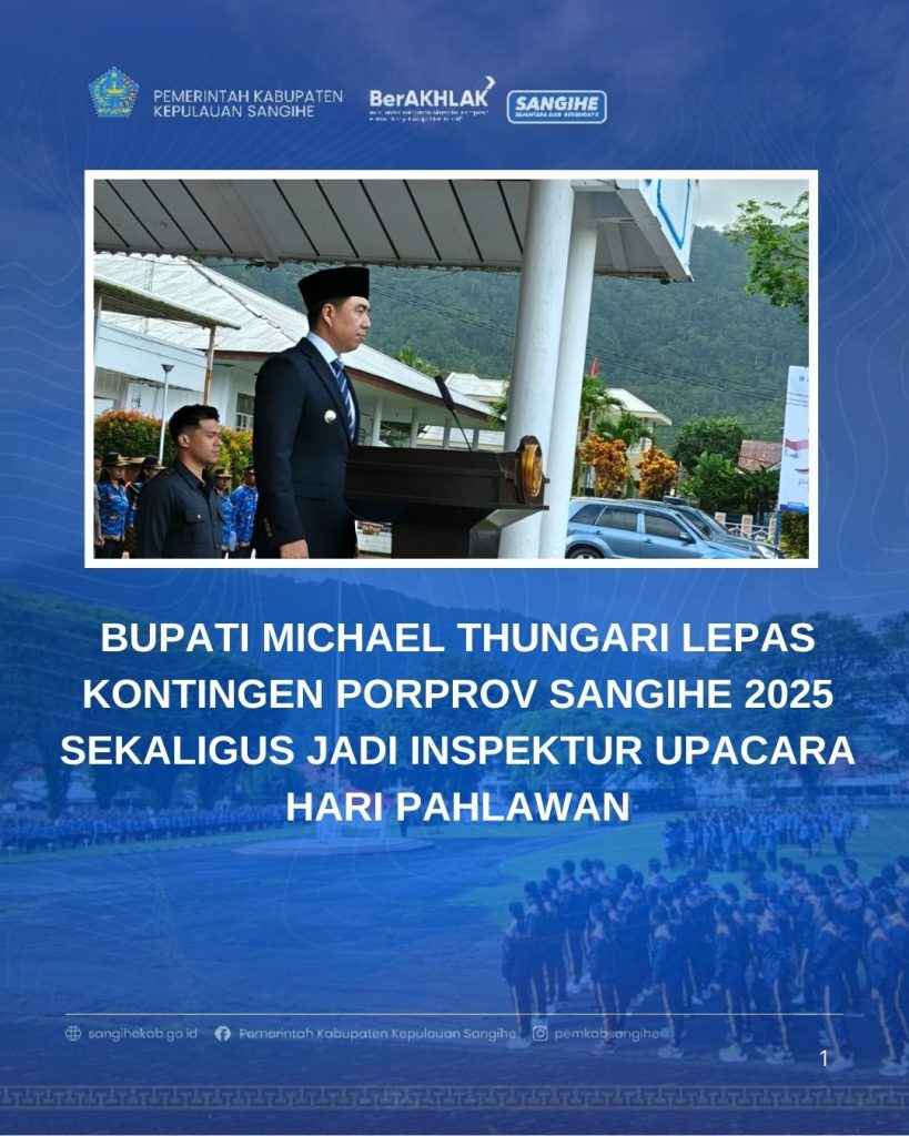 BUPATI MICHAEL THUNGARI LEPAS KONTINGEN PORPROV SANGIHE 2025 SEKALIGUS JADI INSPEKTUR UPACARA HARI PAHLAWAN