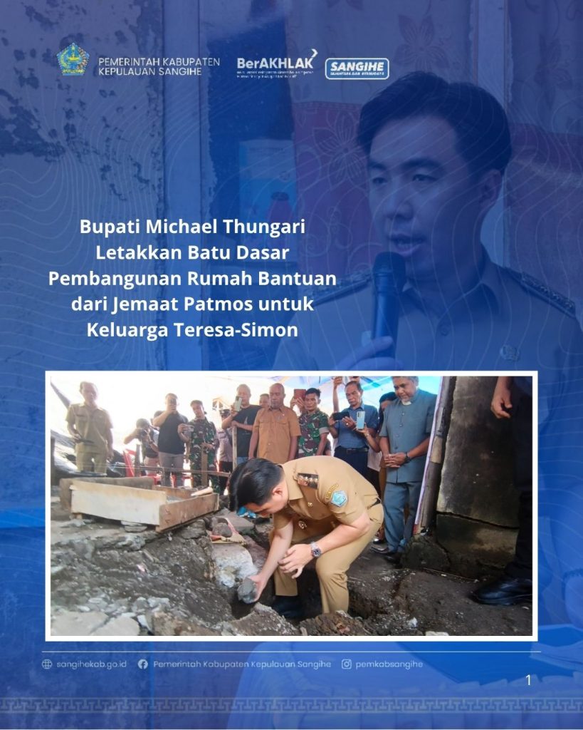 Bupati Michael Thungari Letakkan Batu Dasar Pembangunan Rumah Bantuan dari Jemaat Patmos untuk Keluarga Teresa-Simon