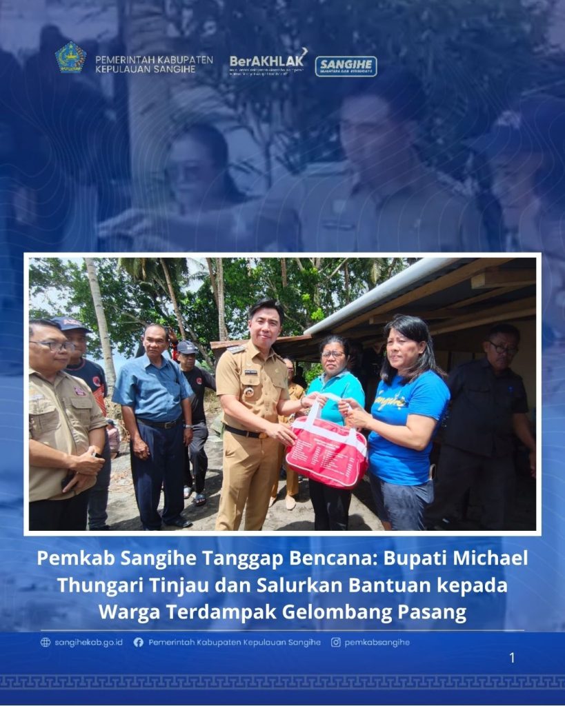 Pemkab Sangihe Tanggap Bencana: Bupati Michael Thungari Tinjau dan Salurkan Bantuan kepada Warga Terdampak Gelombang Pasang