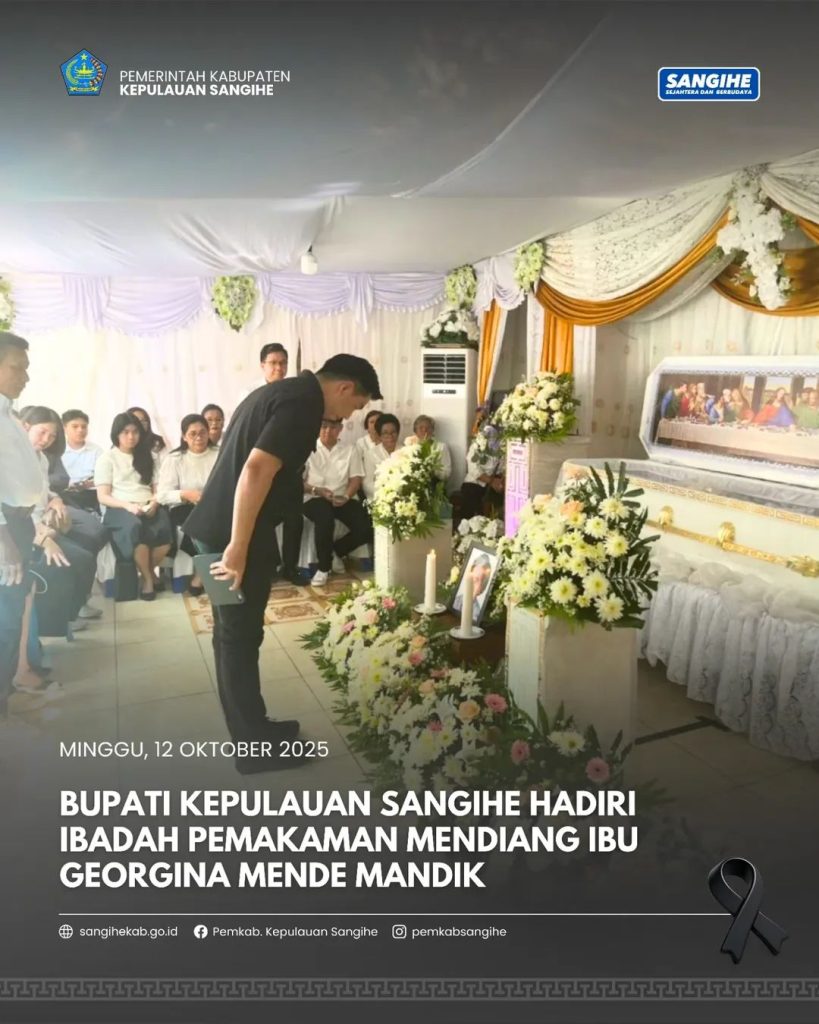 Manado, Minggu 12 Oktober 2025 — Bupati Kepulauan Sangihe, Michael Thungari, S.E., M.M., menghadiri Ibadah Pemakaman mendiang Ibu Georgina Mende Mandik, istri dari mendiang Kolonel Infanteri Yan Mende, Bupati Kepulauan Sangihe ke-17 periode 1981–1986. Ibadah yang penuh khidmat tersebut dilaksanakan di Jl. B.W. Lapian 6 No. 11, Tikala Kumaraka, Manado. Dalam suasana duka yang mendalam, […]
